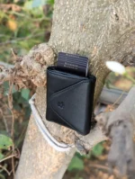- Design: Slim bifold structure with a magnetic closure and pop-up card holder
